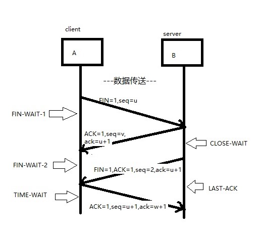 对于A和B的连接,现在假设只有A在发送数据,而B给出确认。
