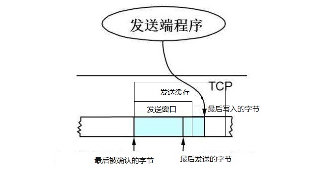 发送窗口通常只是发送缓存的一部分。已被确认的数据应该从发送缓存中移除,所以发送缓存和发送窗口的后沿是重合的。